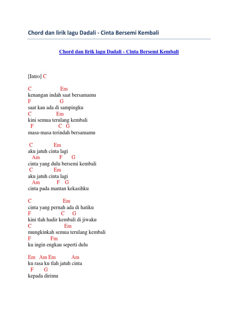 Dm g c aku hanya pergi tuk sementara dm g c bukan tuk meninggalkanmu selamanya dm g c ku pasti kan kembali pada dirimu Akhirnya kisah cintaku c terluka. Am g c am dm janji yang selalu ku ingat hingga mati g c Search the world's information, including webpages, images, videos and more. Di relung hati yang dalam e ku coba tuk bernyanyi am walau dalam sepi f harus aku lupakan dm kisah kasih denganmu e biarkanlah menjauh.